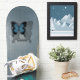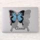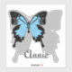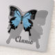 Blue backed butterfly with the wing spread flying over its shadow. Within the shadow a space for a name, "Annie" and can be personalized for your own.