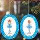 This cute holiday ornament features ballerina girl with red hair in a blue tutu dancing in a white frame on a blue and white snowflake background. Reverse features back of ballerina which gives the illusion of her dancing when you turn the ornament back and forth. Add your child's name and year to personalize. Makes a great gift for the ballerina in your life.