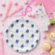 This all occasion paper plate features a repeating pattern of two ballet dancers in dark blue and a swirl embellishment. The images are placed on a white background. Perfect for any dancer or anyone who loves dancing, or for recital receptions. Be sure to see the matching napkins in our store.