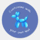 Blue Balloon Animal Dog Custom Text Classic Round Sticker
