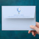 Elevate your baby shower stationery with this soft blue envelope featuring a watercolor balloon and eucalyptus greenery. Personalize the return address for a sweet finishing touch that complements blue and gold baby shower themes.