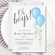 This couple's twin boy's Baby Shower Invitation is decorated with watercolor blue balloons and green eucalyptus and says "Oh Boys!"