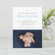 Use this sweet template to invite people to your baptism celebration for your baby with two spaces for photos. Lovely white, grey, and blue colour scheme. All text is customizable.