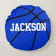 Blue Basketball Custom Round Throw Pillow: A round throw pillow with a custom text box for you to type in the name of your favourite basketball player, team name, jersey number, or any other text. Click the "Customize" button to change the font type, size or colour. These make great gifts for basketball players and fans, especially for those with blue team colours!
