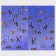 pictured on a blue gradient background are basketball players, hoops, balls, numbers, logos, in a colorful basketball pattern