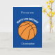 A blue personalized basketball 14th birthday card for son, grandson, godson, etc. You will be able to easily personalize the front with his name. The inside reads a birthday message, which you can easily edit as well. You can personalize the back of this basketball birthday card with the year. This would make a unique birthday card keepsake for kids who love basketball.