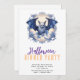 Blue Bat Blue Flowers Hat Halloween Dinner Party Invitation