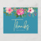 Blue Bat Mitzvah Chic Floral Gold Script Thank You Postcard