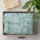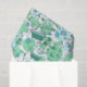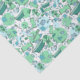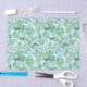 Fun cartoon print blue/green tissue paper featuring a pattern of cute beauty and bathing items such as bathrobes, soap, bath towels, bubbles and water splashes.