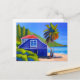 Blue Beach House and Palm Tree | Keeping in Touch Postcard