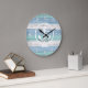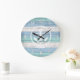 Blue Beach Wood Nautical Stripes & Anchor Large C Clock