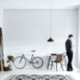 Simple modern graphic beam pattern in baby blue on white. Original graphic and pattern design and by www.mylittleeden.com
