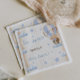 Are you seeking Vintage Rustic Teddy Bear's theme decor for your baby boy shower party? Then these napkins are tailored just for you. Featuring pastel tones like blue, fawn, and beige, adorned with a cute teddy bear in a delightful hot air balloon and sprinkled with blue stars, it will be perfect for your baby boy shower. Don't forget to explore the full collection! 🎈🌟"