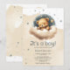 Welcome your little prince in style with this adorable baby shower invitation featuring a charming watercolor baby bear resting on soft creamy clouds surrounded by twinkling stars. Perfect for an “It’s a Boy!” baby shower, this sweet and dreamy design sets the tone for a heartfelt celebration. The soothing pastel hues and delicate details make it ideal for creating magical memories for the mom-to-be.