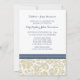 Classic and elegant damask baptism invitation for boy in light tan beige brown and dark navy blue.