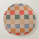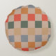 Blue Beige Orange Brown Chequered Gingham Pattern Round Pillow