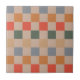 Blue Beige Orange Brown Chequered Gingham Pattern Tile