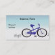 A great design for someone in the bicycle business. A bike with a blue seat and frame, black pedals and black tires. Customize with all of your information as desired.