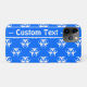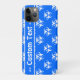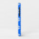Biohazard symbol pattern phone case in bright blue and white with editable text field. Versions for most recent iPhone and Galaxy models are available.