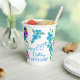 Birthday party paper cups with a cute little birdie and forget-me-not flowers designed paper cup for your friend's birthday who is a bird or garden lover. Forget me not flowers and colourful birds surround the happy birthday text that you can customize. The charming little forget-me-not flower is loved all over the world. Its tiny, bright blue and pink flowers give a special meaning to these paper cups. The little bird was hand painted with bright blue and pink colours to complement the forget-me-not florals. Shop our store for more gifts and party decorations with this special design.