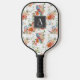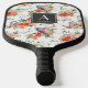 This cute pickleball paddle features a monogram and your name/text on a white background with a blue bird and pink floral patterns. Personalize it for your needs.