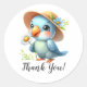 Blue Bird with Hat and Flower Thank You Classic Round Sticker