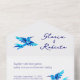 Blue Birds All in One Mexican Wedding Invite. Introducing our colourful captivating Mexican Theme Wedding All-in-One Invitation, a seamless blend of boho simplicity, modern elegance, and the vibrant spirit of fiesta weddings. This invitation is an artistic masterpiece inspired by Mexican folk art painting, perfect for couples seeking a distinctive touch for their Mexico destination weddings.