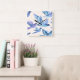 Blue Birds Flying | Modern Watercolor Square Wall Clock