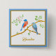 A button with an image of a female and male bluebird. The background, image and text can be personalized. Original artwork by W.B.