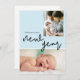 Blue Birth Stat Photo Happy New Year Baby boy Holiday Card