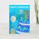 Blue Birthday Cake, this design features a blue birthday cake and blue balloons in watercolor.