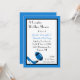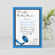 Fun couples wedding shower invitation done in a pretty blue, black, silver tone, and white. Graphics of a blue, black, white, and silver frame, around a white text area, with a stylish blue and black stiletto heel kicking a blue and black football. Blue and black text is fully customizable to personalize for your wedding shower. Great for the football fan couple.