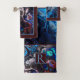 Blue, black and burgundy tie dye marble, monogram bath towel set