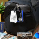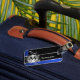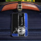 Blue black and silver monogram luggage tag