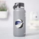 This custom basketball sticker features the realistic image of a basketball that has alternating blue, white and black recolored panels upon which you can personalize the athlete's name and jersey number - by katz_d_zynes