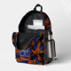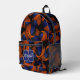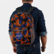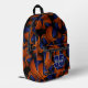 This cool basketball backpack features a random pattern of varied size basketballs turned every which way on a black background - each of the basketballs in the pattern has two recolored panels--one blue and one black - customize with the athlete's name & jersey number - by katz_d_zynes