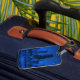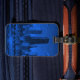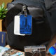 Modern blue and black luggage tag featuring the Chicago skyline. Custom text on the front of the tag. Keep the "Chicago" text or change to your desired name, text, or phrase. Blue and black colours. Chicago, Illinois skyline is on the front. Use the template to create your own Chicago luggage tag.
