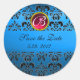 BLUE BLACK DAMASK MONOGRAM ,red ruby sapphire Classic Round Sticker
