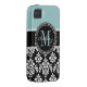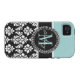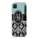 BLUE, BLACK DAMASK, YOUR MONOGRAM ,YOUR NAME Case-Mate iPhone CASE