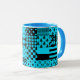 Blue and Black Mixed Patterns Patchwork Design of 16 Different Design illustration of Fleur-de-lis, crowns, hearts, Polka Dots, Greek key, irregular Abstract, Houndstooth, Trees, Harlequin, Stripes, Check, umbrella, anchor, Chevron, blob and flower floral illustration Designs.