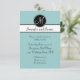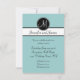 Simple Elegant Monogram Wedding Reception Cards with light blue background, white monogram initial on a black circle tag and bride and groom names on a black and white stripe. Customize with your wedding reception information, monogram names, and wedding colours using Zazzle's easy to use menu prompts. By Elke Clarke© for Monogram Gallery.