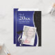 Presenting a graduation invitation or announcement for a musician. Design features blue and black with white accent colours along with a treble clef, and some ghosted music on the black area of the invitation. Customize with your own photo and text.