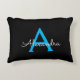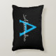 Black and Blue Script Monogram Name and Initial Pillow. The pillow makes the perfect sweet 16 birthday, wedding, bridal shower, baby shower or bachelorette party gift for someone decorating her room in rose gold.