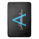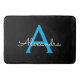 Black and Blue Simple Script Monogram Name Bath Mats. This makes the perfect graduation, birthday, wedding, bridal shower, anniversary, baby shower or bachelorette party gift for someone that loves glam luxury and chic styles.