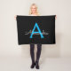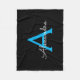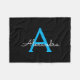 Blue Black Script Girly Monogram Name Fleece Blanket