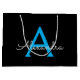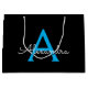 Blue Black Script Girly Monogram Name Large Gift Bag