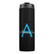 Blue Black Script Girly Monogram Name Thermal Tumbler