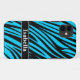 Cute and trendy teal blue and black zebra stripe print pattern with custom name. Add your own personal touch when you customize your full name or monogram initials on the black and white nameplate. Cool personalized gift for girly girls and ladies that love jungle animal prints in funky fun colours.