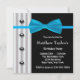 Black white tuxedo blue black bow tie mens birthday party invitations.