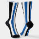Blue Black Vertical Stripes Pattern Socks designed by Nisha Prabhu. Step up your sock game with our Blue Black Vertical Stripes Pattern Socks. These socks are the perfect blend of style and comfort, ensuring you look and feel your best all day long. The striking pattern of deep blue and sleek black vertical stripes adds a touch of sophistication to any outfit, whether you're dressing up for a special occasion or simply elevating your everyday attire. With their versatile design, these Blue Black Vertical Stripes Pattern Socks are a must-have addition to your sock collection, allowing you to express your unique sense of style with every step you take.